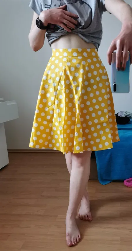 Юбка большого размера, когда вы носите под нее пальто, она не такая, как классические юбки рокабилли. Кроме того, мой рост 168 см, юбка выше колен, поэтому она не достаточно длинная.