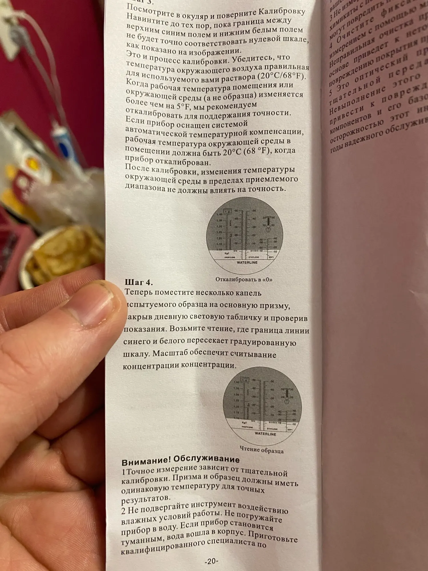 Антифриз измерил,только обращаю внимание,что инструкция косячная-написано выставлять по уровню 0 на дистиллированной воде,хотя по факту изначальна пришёл отлакированный-уровень должен стоять по надписи water line при калибровке на дистиллированной воде. Если нет возможности купить такую воду-поставьте кастрюлю с крышкой и водой,конденсат на крышке будет практически дистиллированной-перед калибровкой не забудьте остудить!