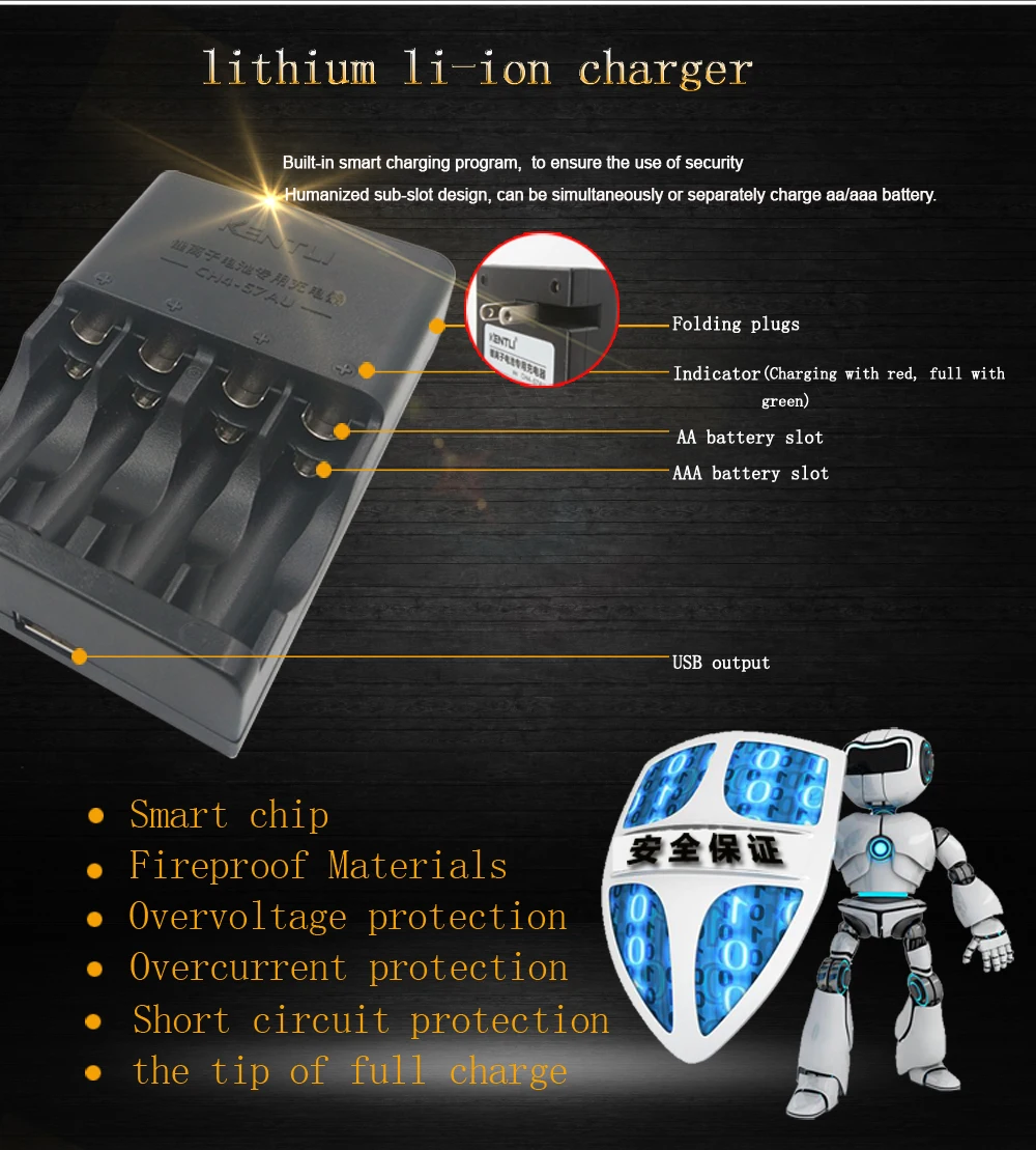 KENTLI 4 шт. 1,5 в aa 3000mWh литий-ионный Литий-полимерный литиевый аккумулятор + 4 слота AA AAA литий-ионный смарт-зарядное устройство