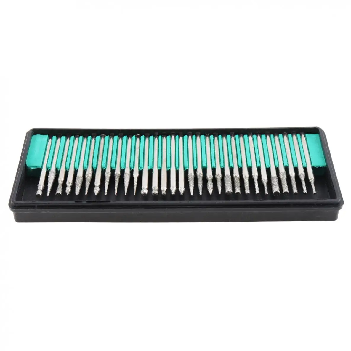 30 шт.компл. бриллиант точка Биты Сверла аксессуары для головы Dremel иглы шлифовальный круг, литые цилиндрической формы мяч 2,3 мм 3,0 мм хвостовик