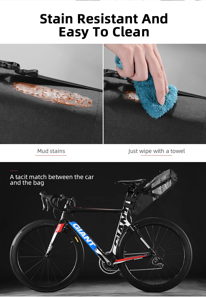 Товар соответствует описанию. Сумка не помогает в дождь. Материал качественный. Единственный минус за не сколько дальних поездок заметил, что со временем сумка спускается ниже по подседельному штырю, а так в эксплуатации хороша