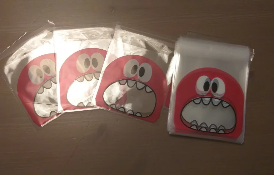 50 шт. милый большой Teech пасть чудовища пластиковый пакет для печенья на день рождения или свадьбу подарочная упаковка для конфет Сумки OPP самоклеющиеся вечерние сувениры