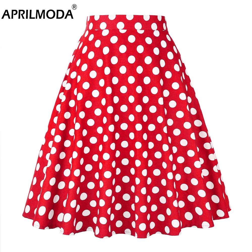 2021 летняя юбка миди подиумная винтажная рокабилли сарафан красный женский сексуальный Pinup 50S хлопок узор в горошек Скейтер уличная одежда