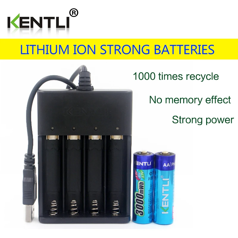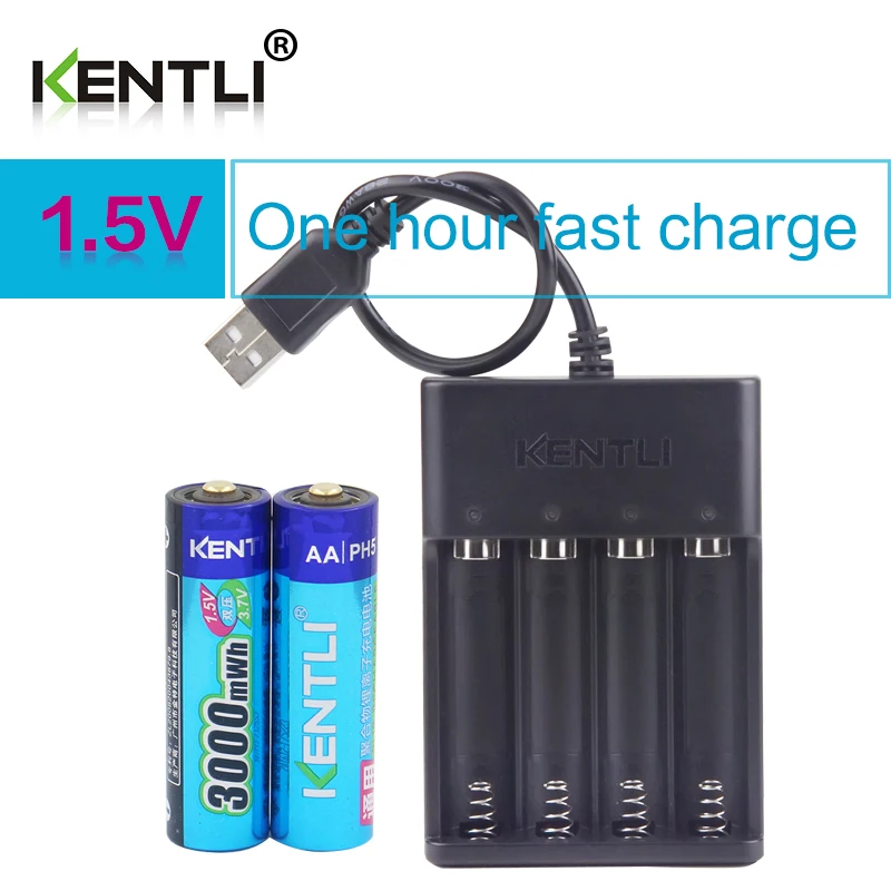 Литий-ионные аккумуляторные батареи KENTLI, 2 шт., AA 1,5 в, МВт/ч, 4 слота, зарядное устройство для полимерных литий-ионных аккумуляторов