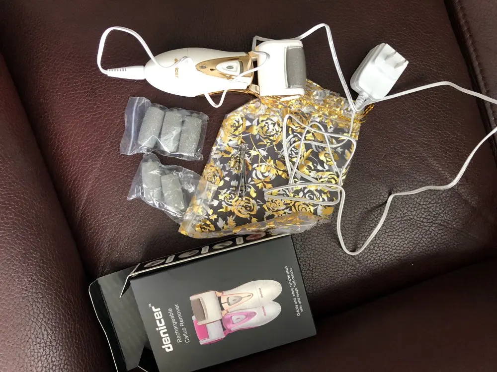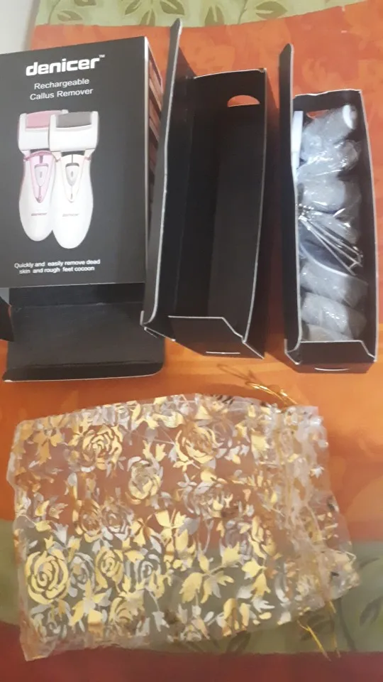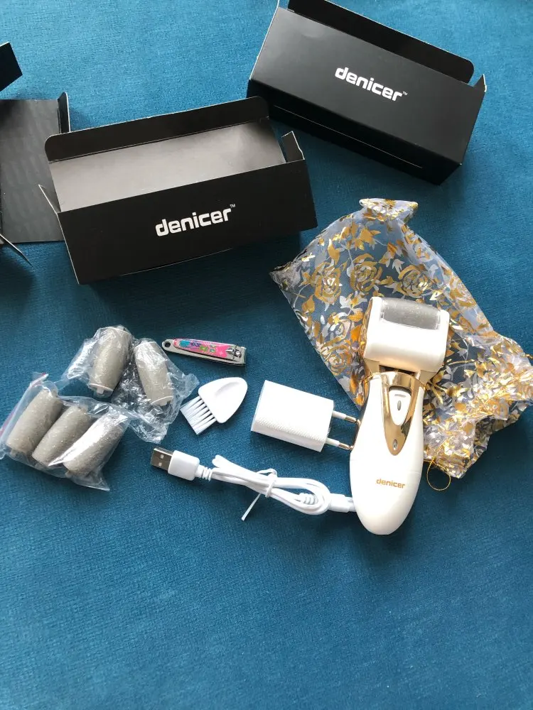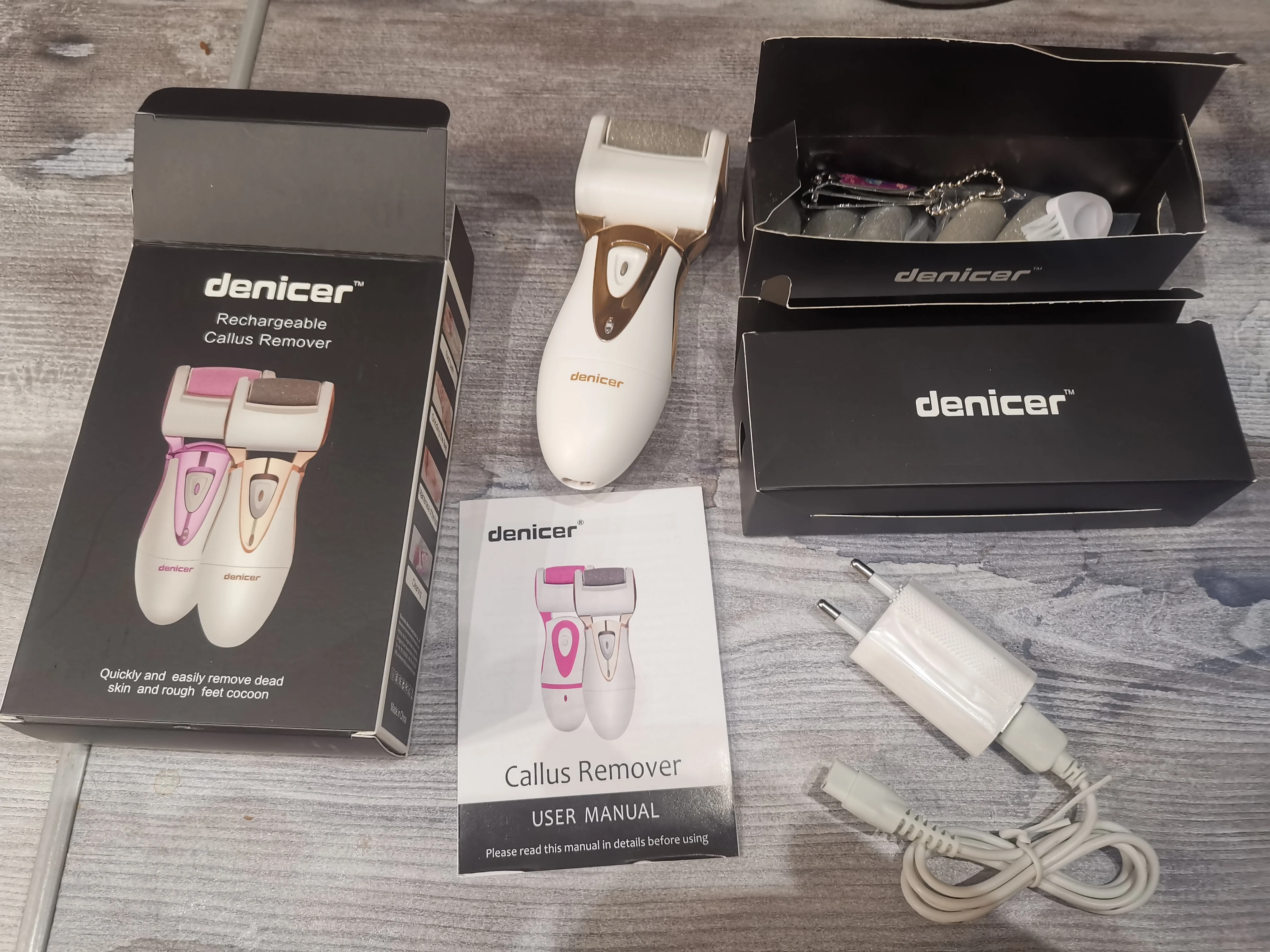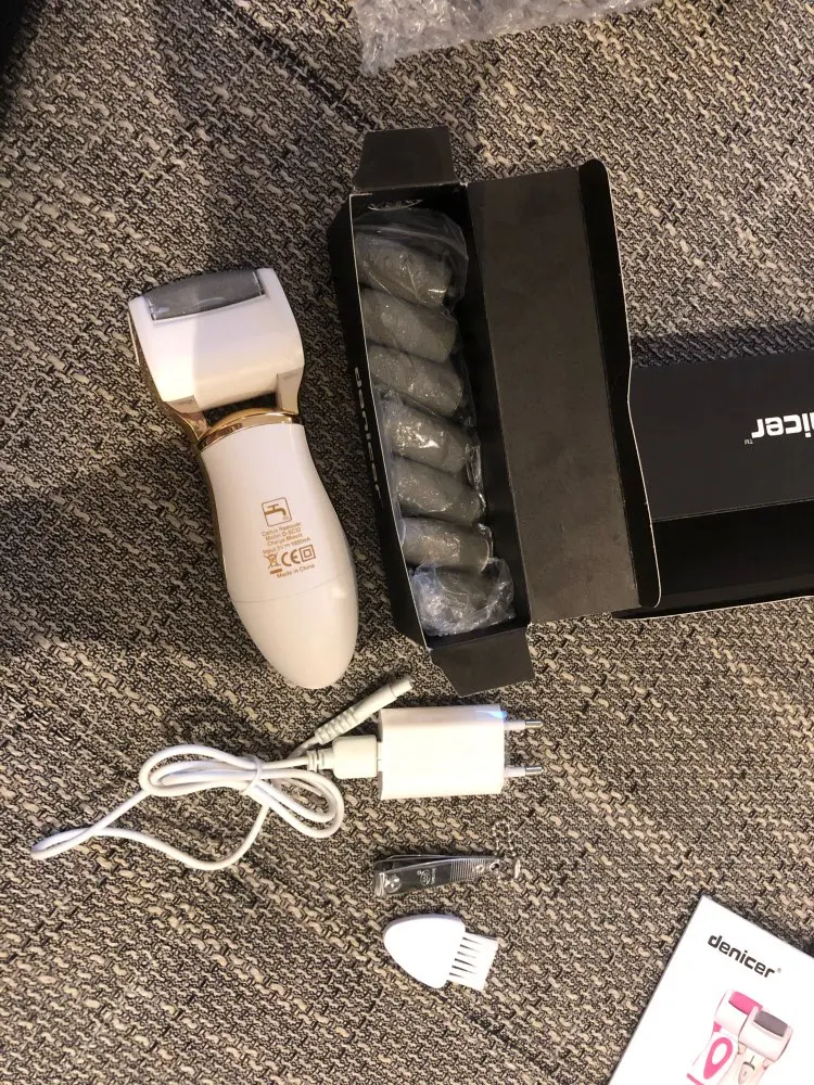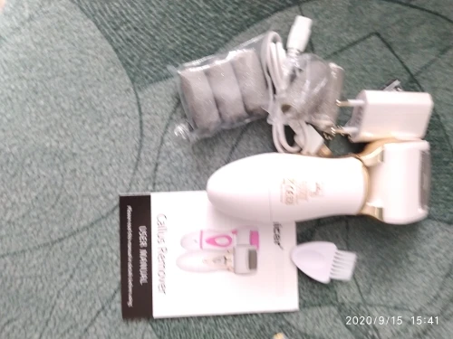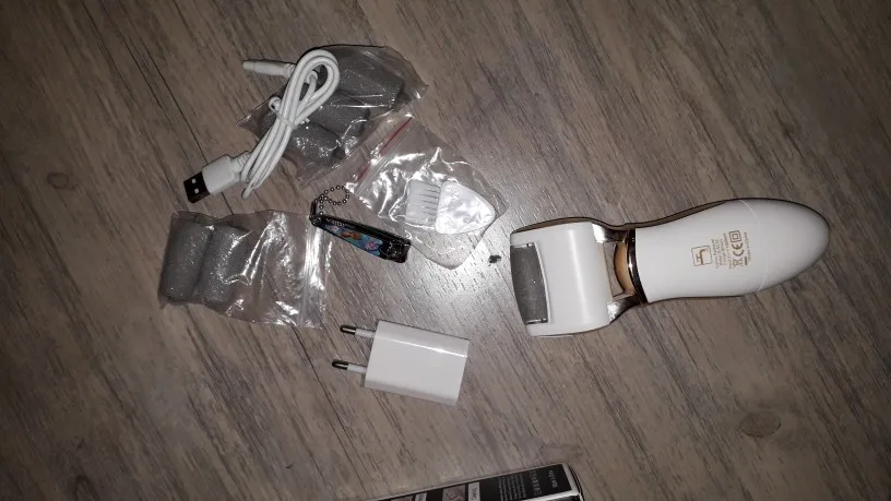 Товар соответствует описанию. Для моих пяток нужно что нибудь по мощнее, с одного раза не справилось. Зарядка не показывает статус если зародилась, уже сутки стоит на зарядке а лампочка показывает что заряжается. В целом понравилась. Упакован в коробочку, в которой коробочка, в ней 2 коробочки. В одной запасные части, зарядка кабель. В другой чистка для стоп, упакованная в пупырчатый пакетик, в котором лежит красивый пакет, в котором лежит пакетик, в котором пакет с чистой стоп.