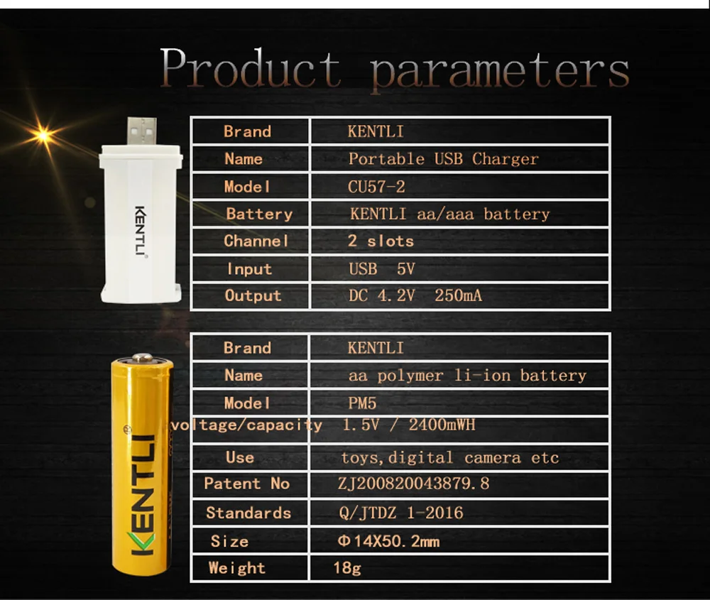 2шт 1,5 V 2400mWh Kentli литий-полимерные литий-ионные аккумуляторы AA + USB AA AAA портативное зарядное устройство