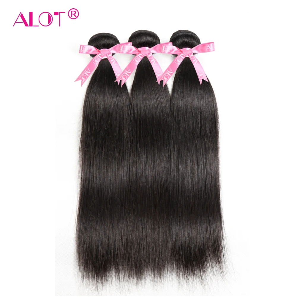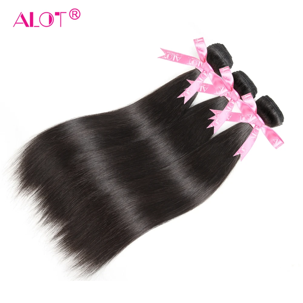 Бразильские прямые пучки волос с закрытием пряди со средней частью,...