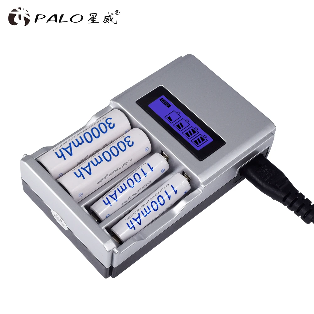 Умное зарядное устройство PALO с ЖК-дисплеем и 4 слотами для аккумуляторов 1,2 в AA AAA NiCd NiMh, быстрая зарядка