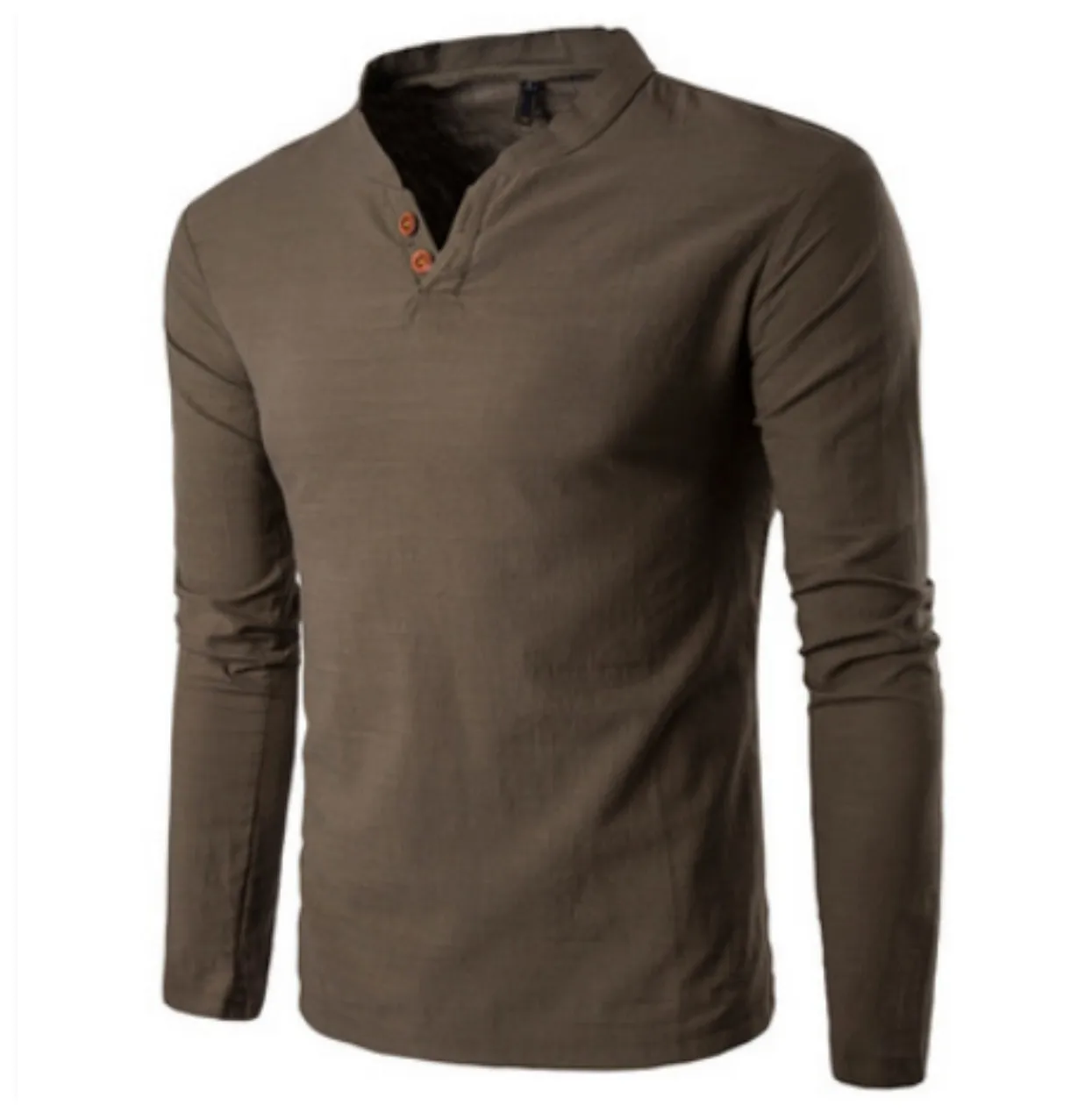 Мужская приталенная футболка на пуговицах, однотонная льняная футболка с длинными рукавами, Повседневная Блузка