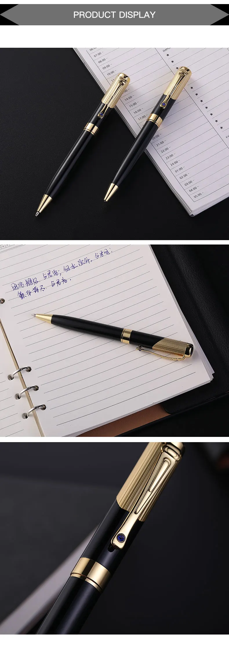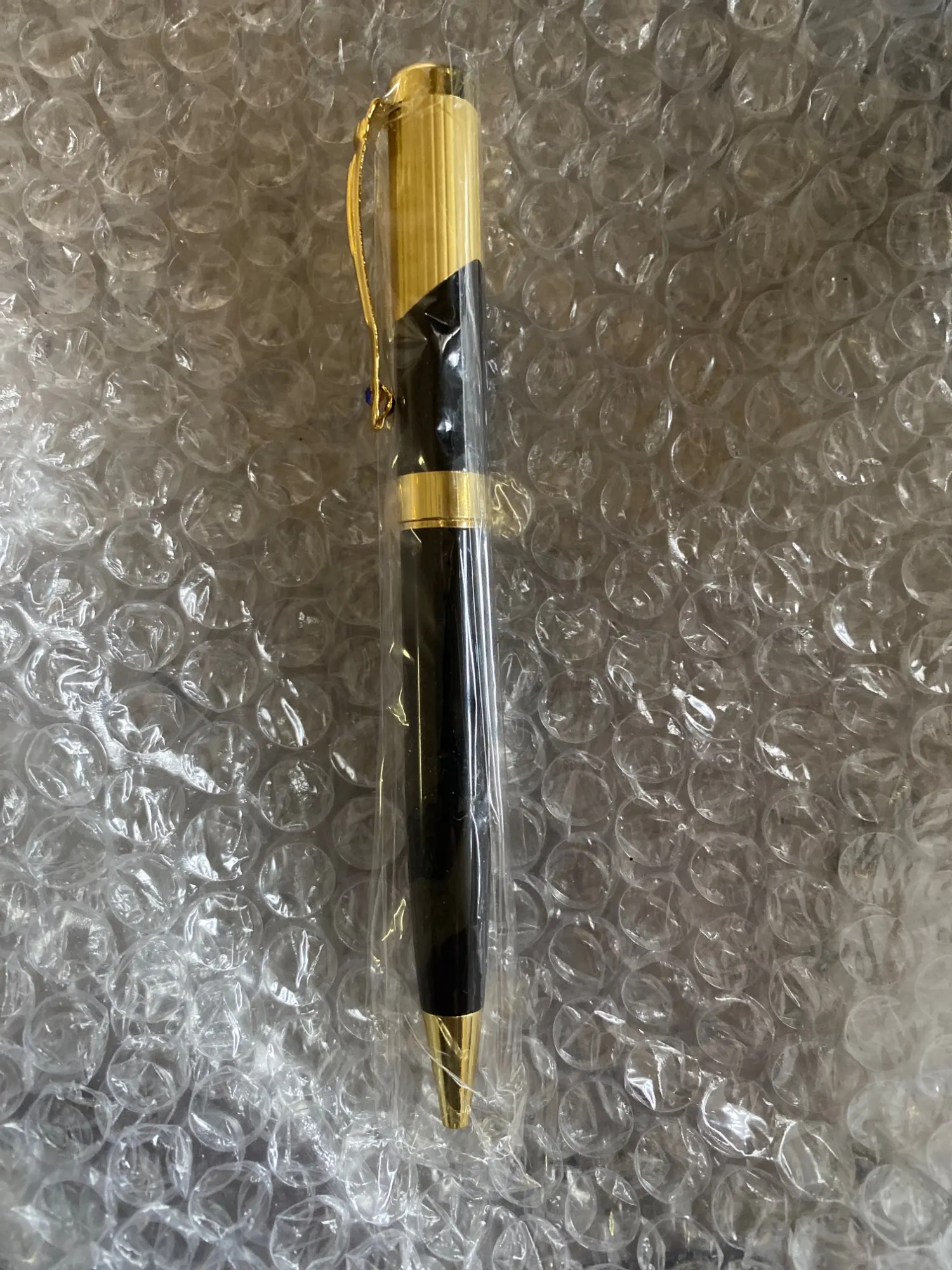 Красивая ручка. Черный с синими чернилами. По какой-то причине я думал, что это темно-синий, но это не проблема. Выглядит мило. Люблю маленький синий камень в зажиме ручки. Только Зажим для ручки немного свободный.