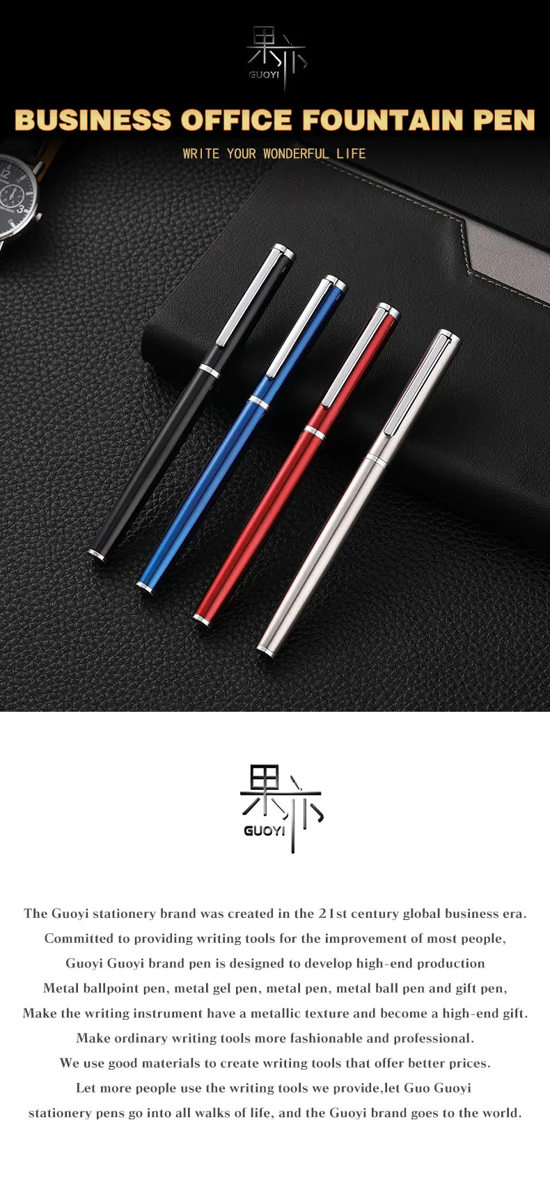 Ручка перьевая Guoyi D110, металлическая, с чернилами, 0,5 мм