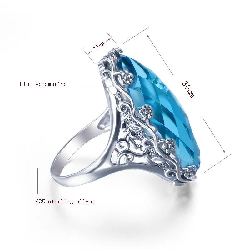 Большое винтажное массивное женское кольцо Szjinao с аквамариновым цветком, большие коктейльные кольца, Твердое Серебро 925 пробы, свадебные украшения, Новинка