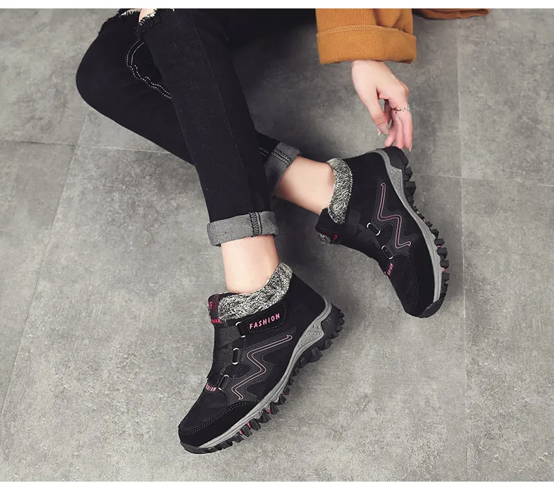 Женские ботинки с плюшевой подкладкой VANCAT, черные водонепроницаемые ботильоны, теплая обувь для работы, обувь для снега, зима 2018
