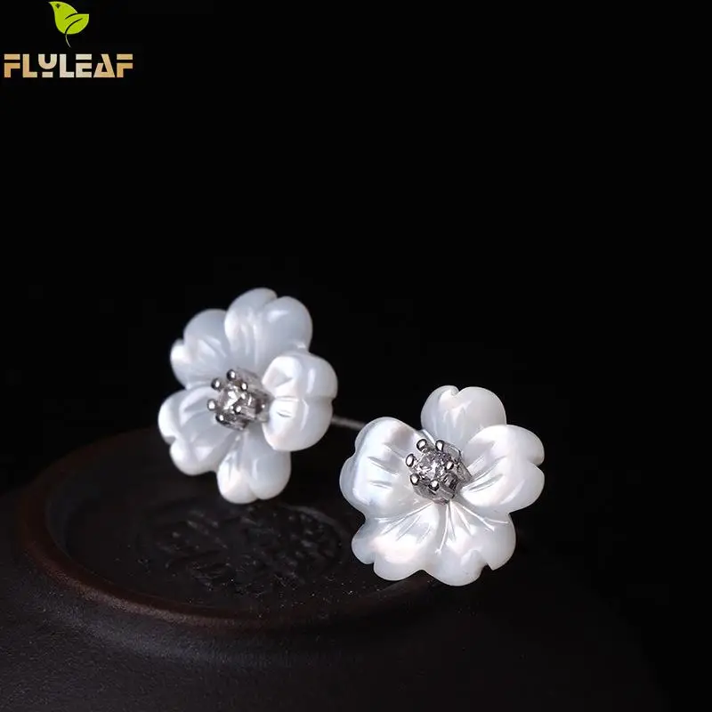 Женские серьги Flyleaf из стерлингового серебра 100% пробы, серьги-гвоздики с цветочным узором из кубического циркония, бижутерия высокого качества