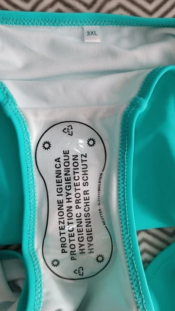 Почитала отзывы, на размер 48-50, рост 159, вес 72, заказала XXL, можно было и XL, сидят очень свободно, но не критично. Есть дублирующая ткань с двух сторон, сшиты качественно, продавец положил подарочки, сережки и мешочек для мокрых вещей, отдельное спасибо!