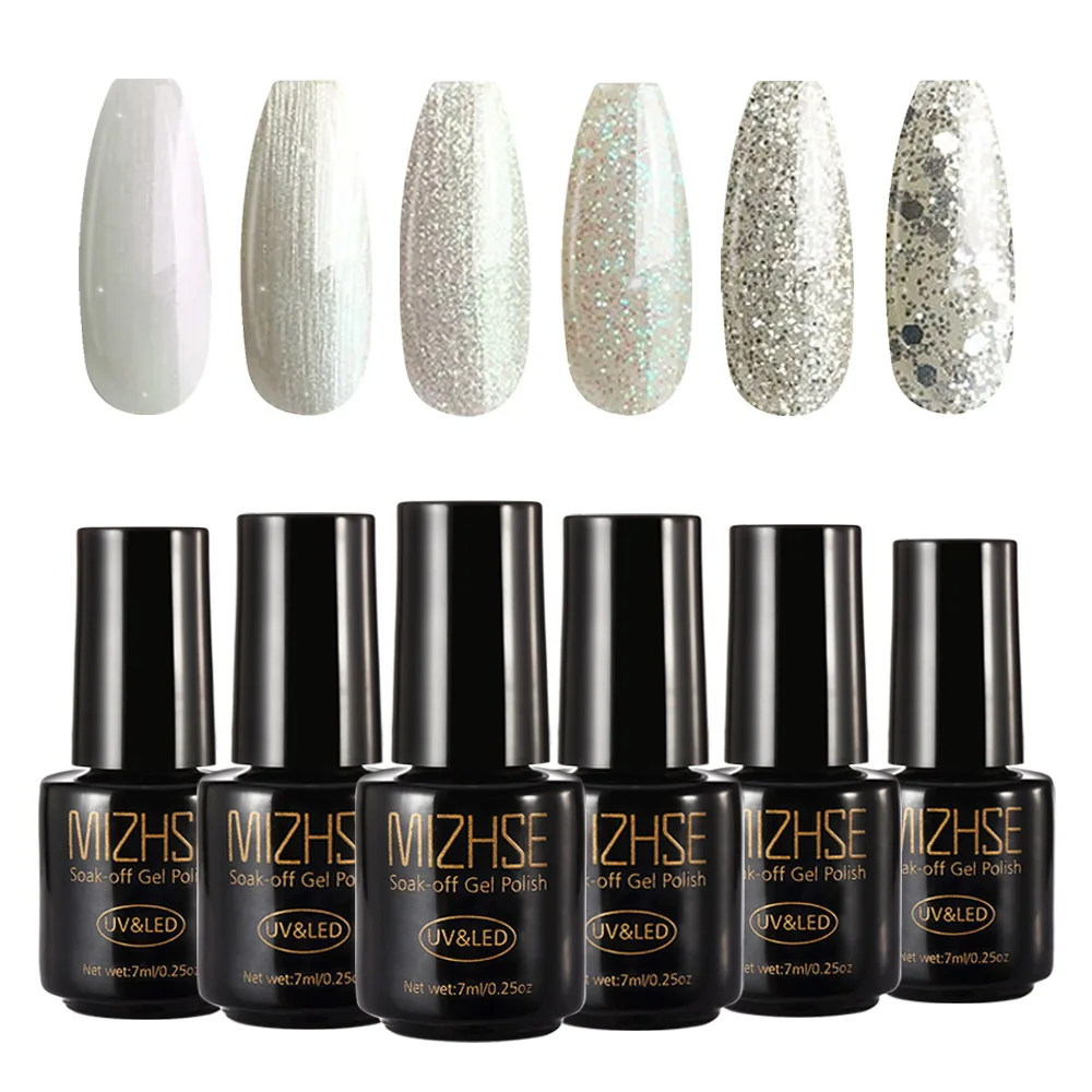 УФ-гель для ногтей MIZHSE, долговечный светодиодный Гель-лак для ногтей, блестящий Цветной Гель-лак серии серебристого цвета с Луной