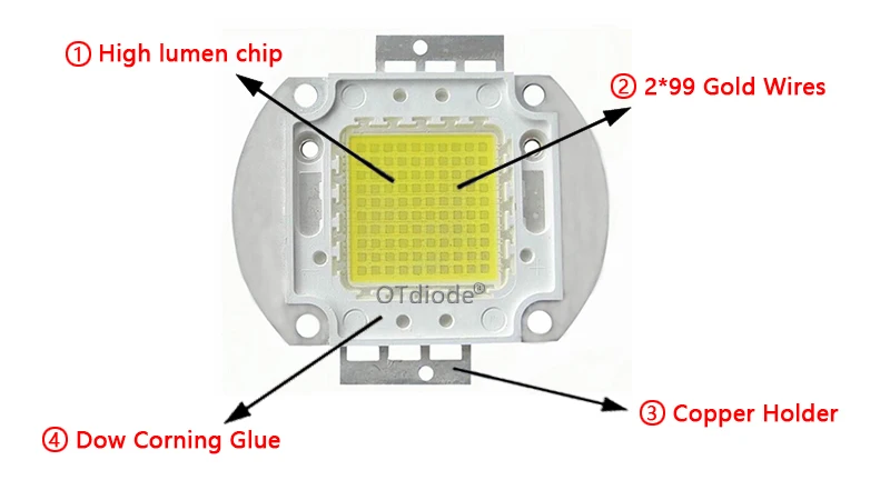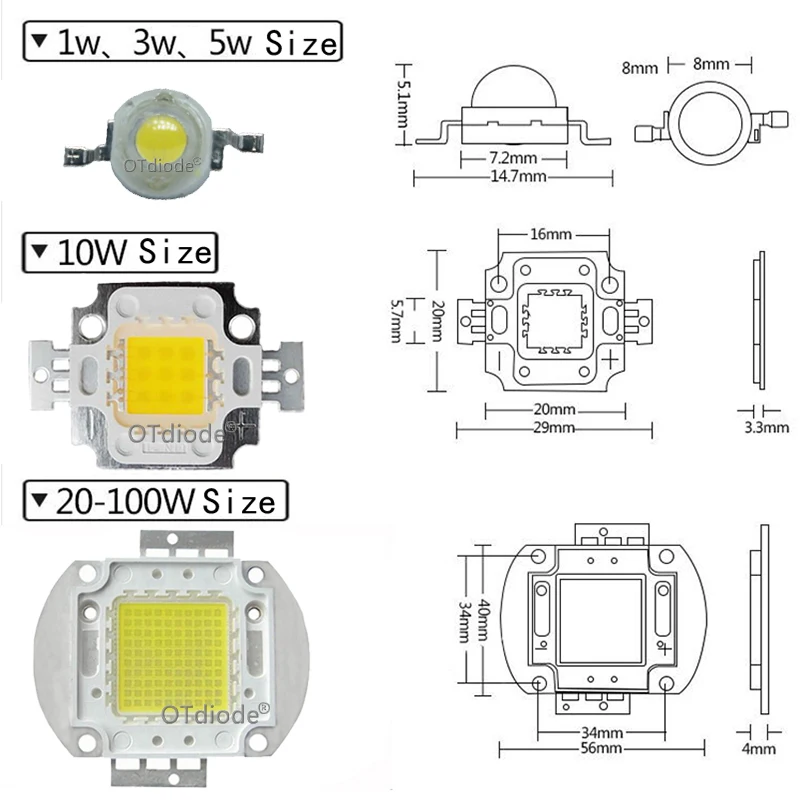 Светодиодный чип высокой мощности, теплый чистый холодный белый свет, 1 Вт, 3 Вт, 5 Вт, 10 Вт, 20 Вт, 30 Вт, 50 Вт, 100 Вт, встроенная лампа матричная лампа COB
