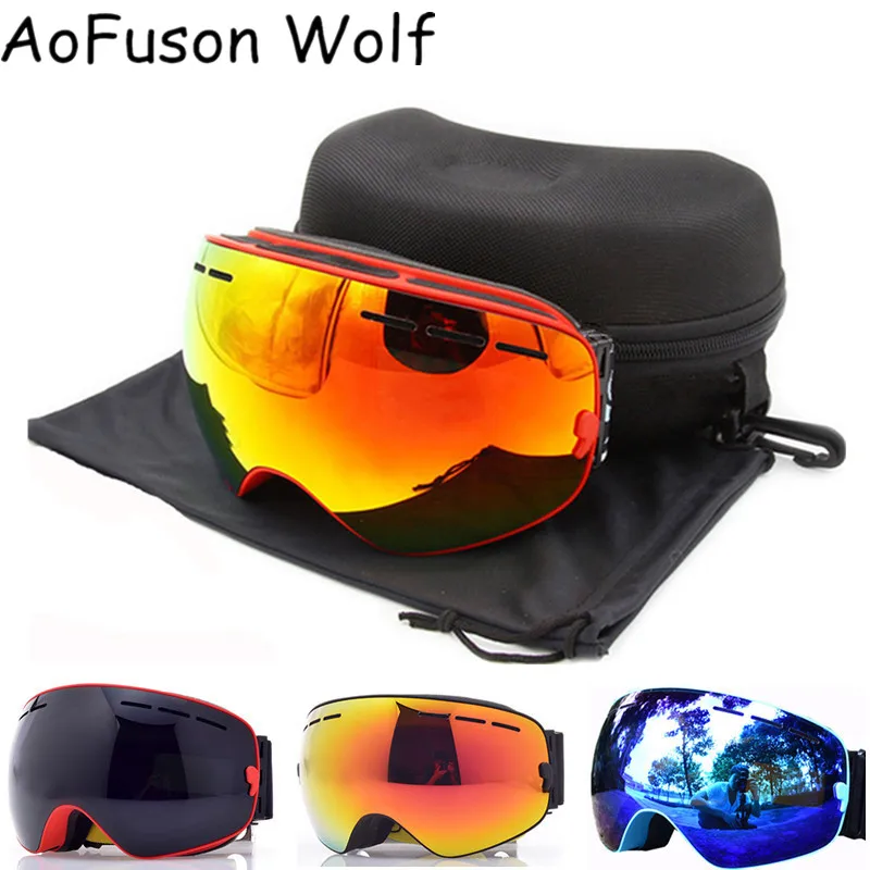 Брендовые лыжные очки , двухслойные противотуманные линзы, очки для сноуборда, большие сферические маски , снежные снегоходные и Оригинальный коробка Сноубординг таращиться