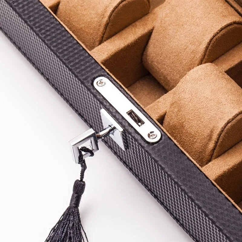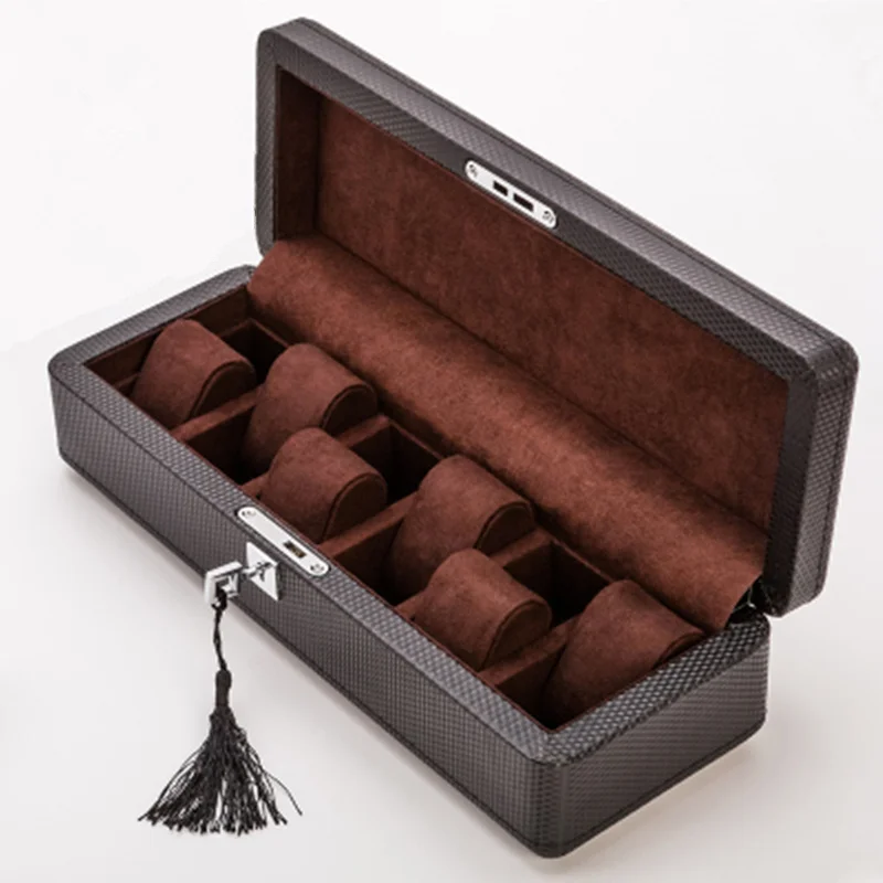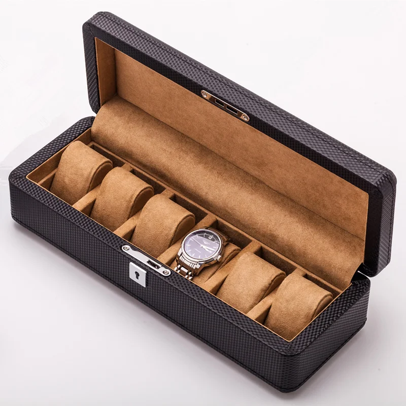 Кожаные коробки для часов из углеродного волокна модные роскошные желтыекоричневые механические часы Витрина коробка для хранения ювелирных изделий Подарочная коробка чехол