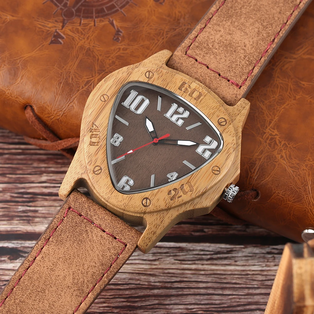 Уникальные деревянные часы для мужчин, спортивные треугольные Мужские кварцевые часы с геометрическим дизайном для гонок, мужские часы с бамбуковым корпусом