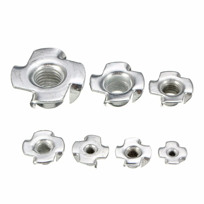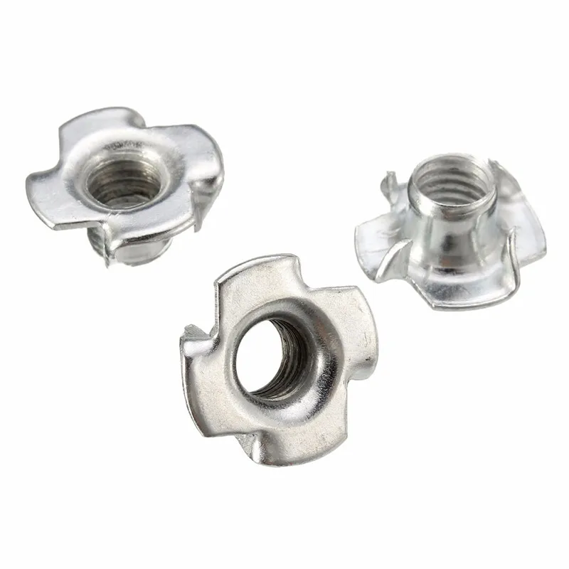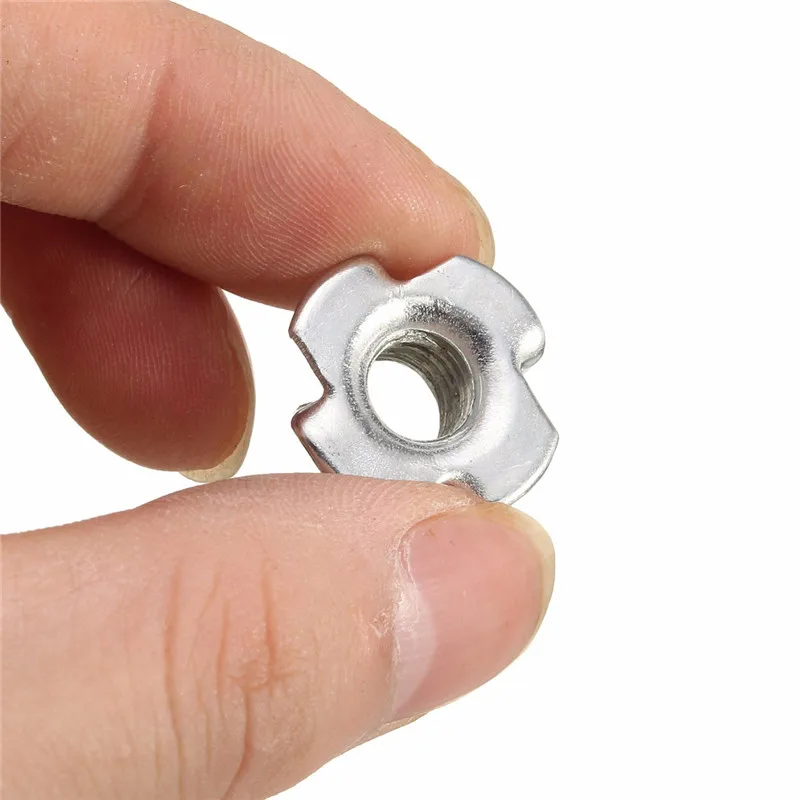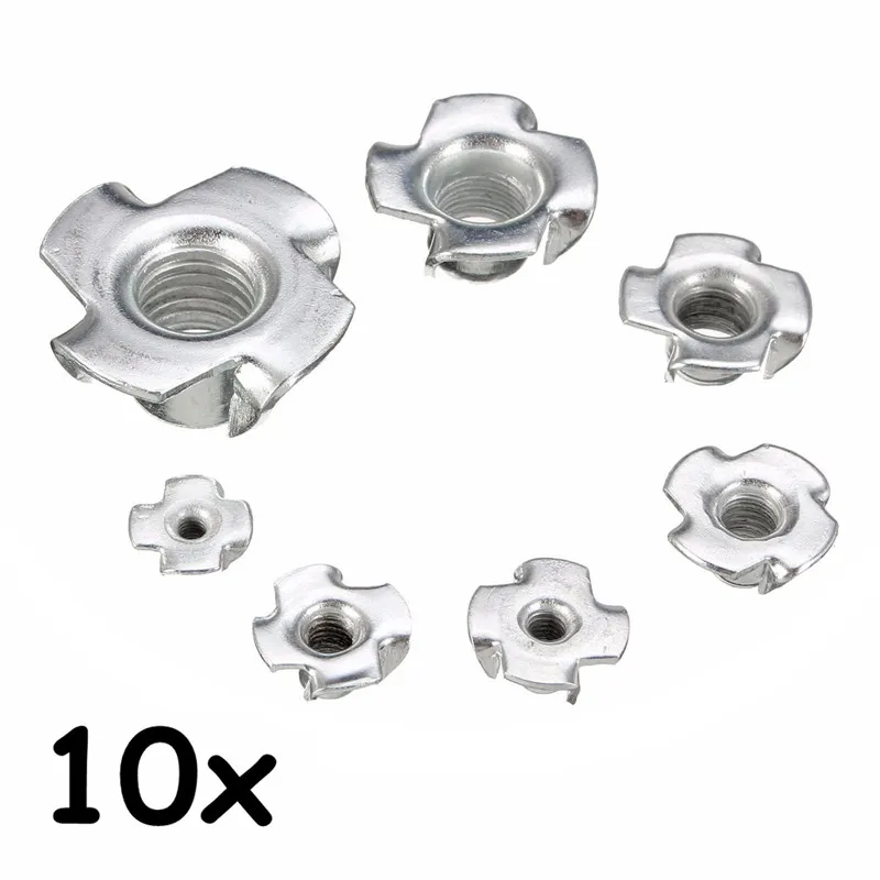 10 шт., оцинкованная гайка с четырьмя когтями, гайка для колонок, Т-образная гайка, потайная гайка, мебельная фурнитура, M3 M4 M5 M6 M8 M10 M12