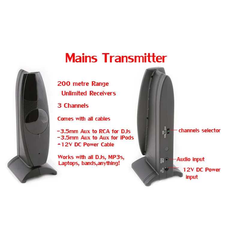 * Подключите передатчик к тому, что вы хотите слушать (i.e iPod, DJ,