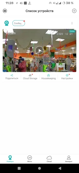 Камера приехала быстро, родной провод коротковат, но работает она отлично. Даже с плохим интернетом можно смотреть, что происходит. Функция оповещения работает, но так как активность в помещении где установлена камера высокая, то пришлось ее отключить. 2 режима sd и hd, поворачивается, ночная съёмка. Простая настройка. В общем хороша за свои деньги. Жалко что может записывать только в облако.
