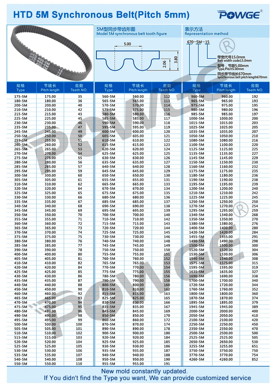 Особенности:. HTD 3M 5M 8M являются синхронными зубьями дуги.Подходит для высоких скоростей.Прочность на разрыв: 319N на 1 мм (229 lbf на 1/8 дюймов) Ширина ремня;Рабочее напряжение: 450 N для 25,4 мм Ширина ремня (100 фунт для 1 дюйм.)Диапазон температур: от-34 °C до + 85 °C (от-30 °F до + 185 °F)