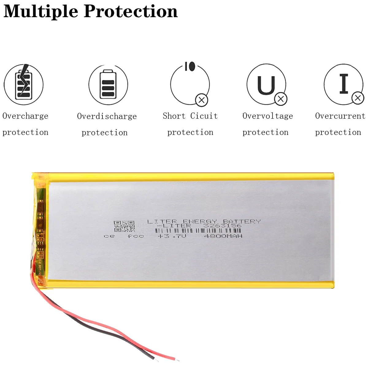 Высокая защита, Встроенная защитная плата, защита от перезарядки и разрядки, гарантированное использование батареи.