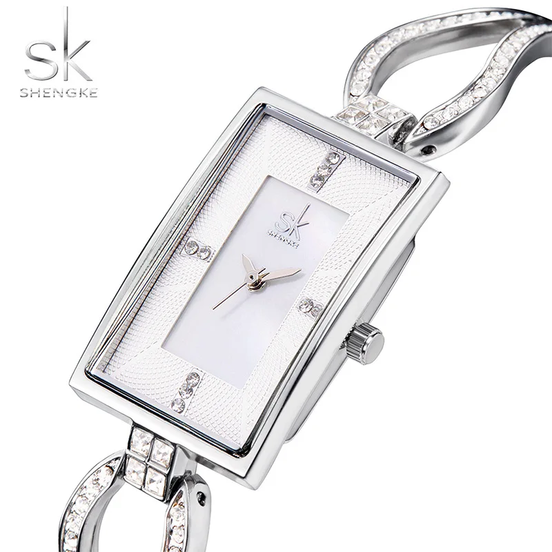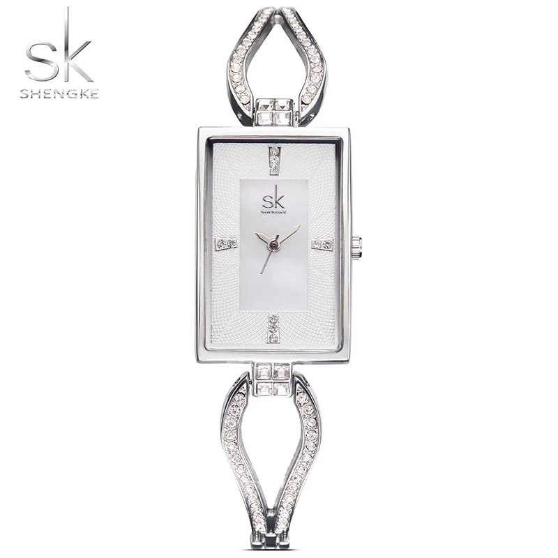 Shengke SK роскошные серебряные часы-браслет прямоугольные женские часы Топ бренд женские часы reloj mujer montre femme