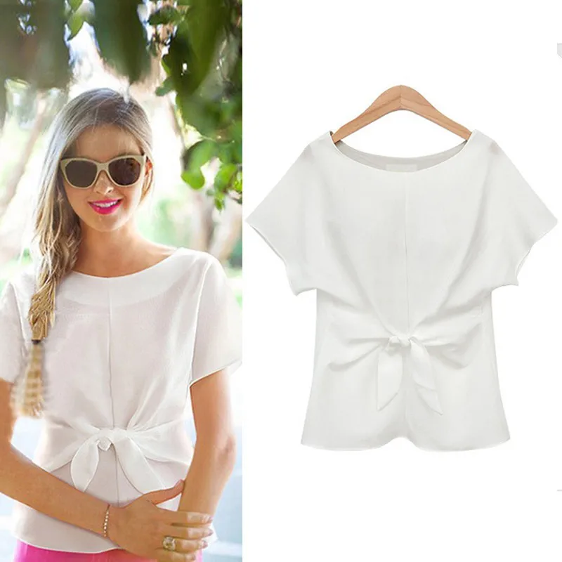 Модная женская сексуальная блузка с коротким рукавом, шифоновая однотонная винтажная рубашка на шнуровке, элегантные женские блузки, женские топы