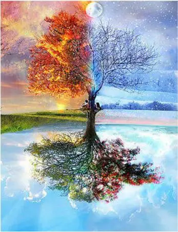 Набор для вышивки крестом 14CT, картина маслом дерева, четыре сезона