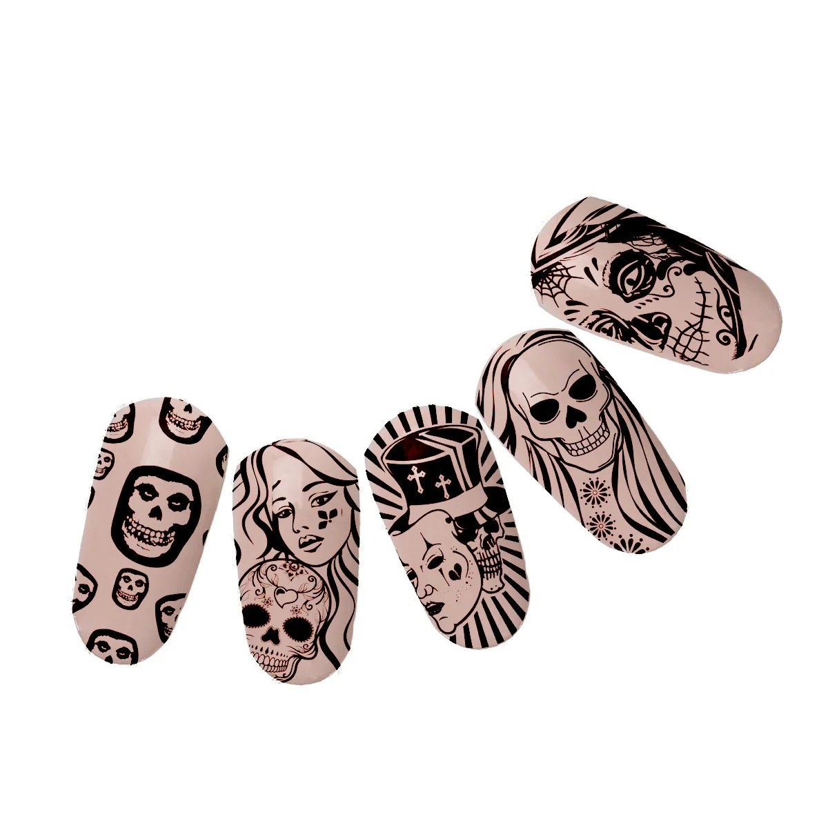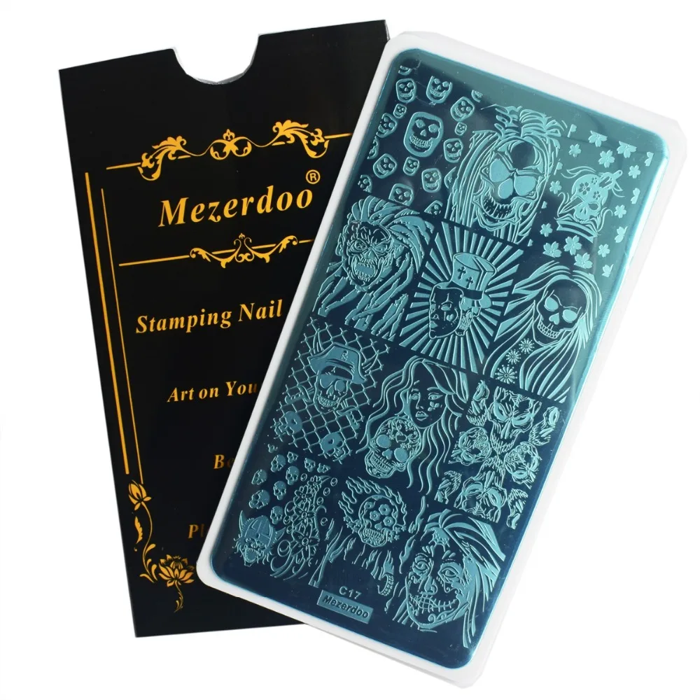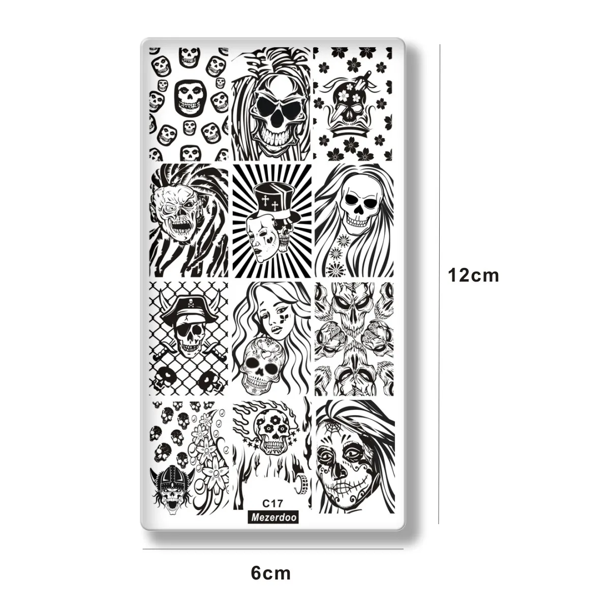 Mezerdoo Хэллоуин прямоугольник ногтей штамповки шаблон DIY крест кровяной череп дизайн пластина с изображениями для нейл-арта инструменты C17
