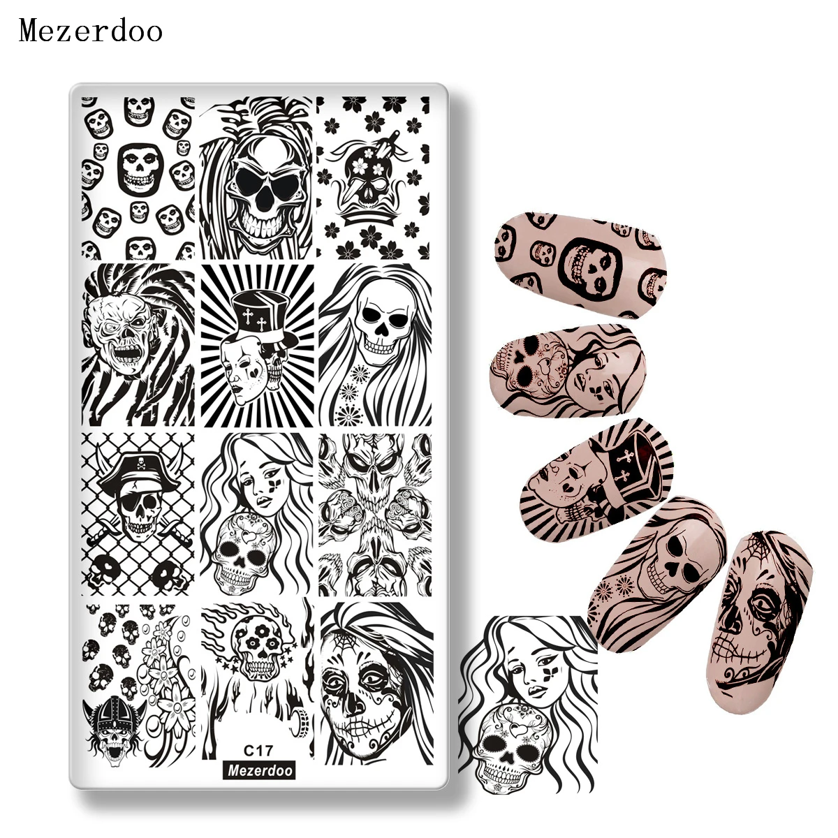 Прямоугольный штамповочный шаблон Mezerdoo для ногтей на Хэллоуин, крест, Череп, инструменты для творчества пластина с изображениями для нейл-арта C17