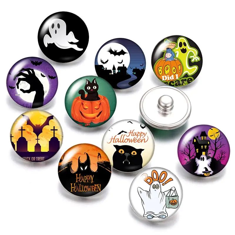 Круглые пуговицы DB0430 18 мм с призраками на Хэллоуин, 10 шт., смешанные круглые стеклянные кабошоны в стиле, ювелирные изделия для кнопок
