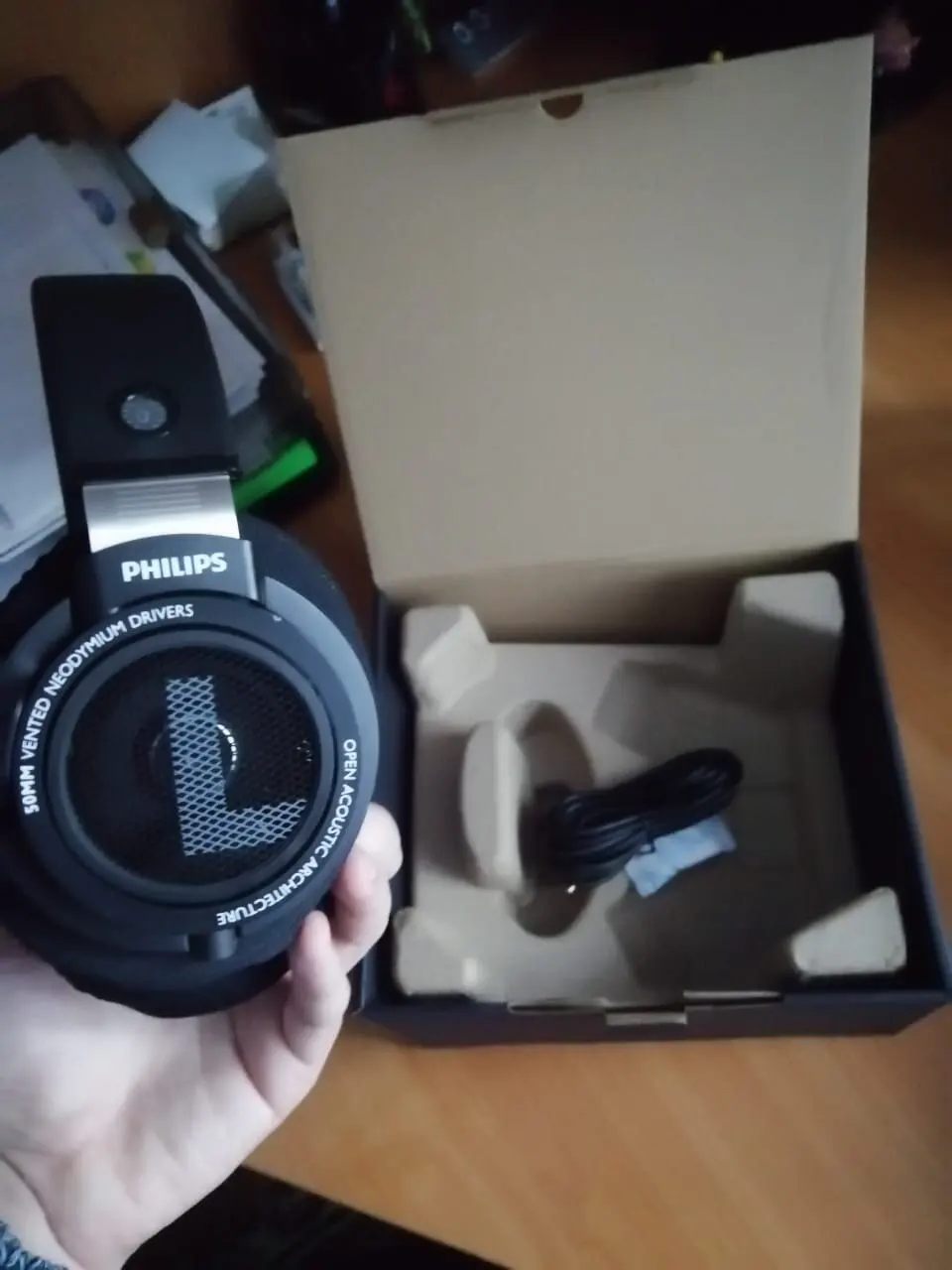 Отличные уши. У тканевых амбушюр немного не хватает сцепления с головой по сравнению с кожаными, но это несущественно. Играют отлично, разборчиво!! (звуковуха Xonar DX ) Завалена суббасовая область, буквально до 100 герц - легко поправляется эквалайзером. Да и то это надо только если вы привыкли к низкому басу как у ушей закрытого типа. Без корректировок звучат тоже отлично на всём кроме может дабстепа и им подобных долбёжек. Провал на 2,7-3 кГц в зоне резонанса ушей как по учебнику. Чувствуется что филипсовцы работали над частоткой, а не только над дизайном. Сравнивал с филипсами ТАРН802 - разборчивость звука на высоких частотах (2 кГц+) значительно лучше. Но, конечно, звучат наружу также громко как и внутрь, это надо учитывать если если решили погонять игруху допоздна и не хотите мешать домашним спать. Короче, уши советую. п.с. пришло в Саратов за 15 дней, трек отслеживался, упаковано в 8 слоев пупырки, коробка доехала как новая, уши тем более.