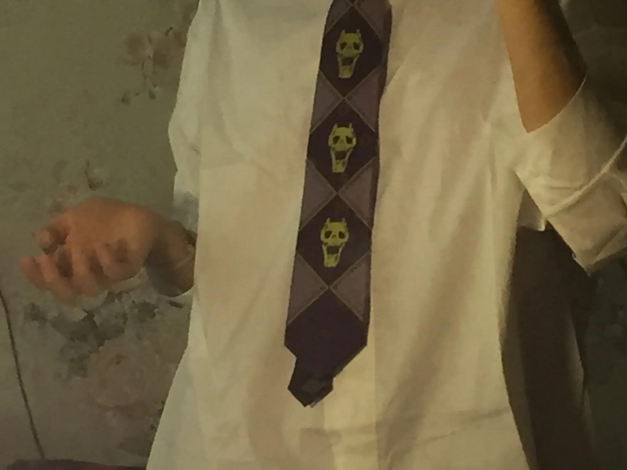 Кружево на галстуке, оно выглядит как король на лице, я до сих пор не прикасаюсь к нему, чтобы положить лицо убийцы королевы на галстук, но это потому, что я забыл сделать узел галстука