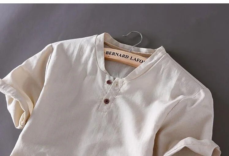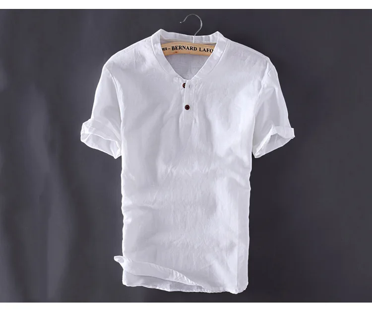 Рубашка мужская с короткими рукавами, брендовая Классическая Повседневная хлопковая льняная приталенная, пуловер с принтом конопли, лето