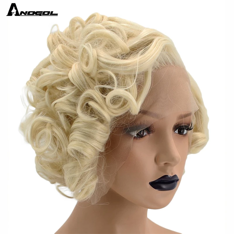 Женский парик для косплея Anogol, Короткие парики из высокотемпературного волокна с волнистыми светлыми волосами, синтетический парик для женщин
