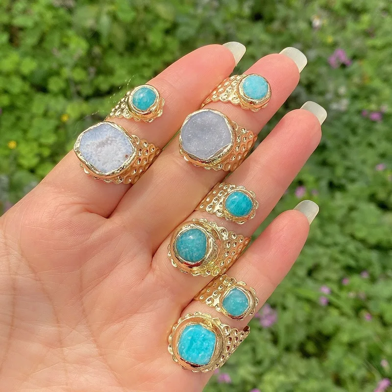 Материал:24k позолоченное кольцо основание, druzy поверхность
