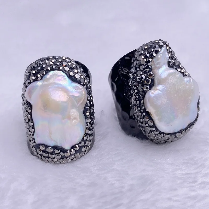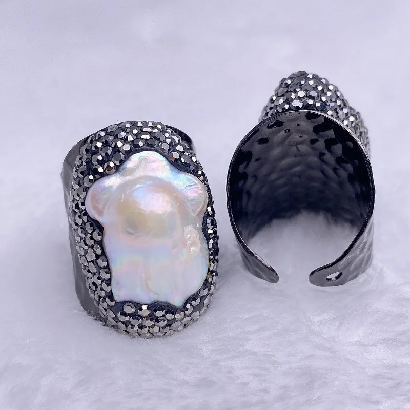 Кольцо-манжета унисекс, регулируемое, светло-серое, жемчуг покрытый...