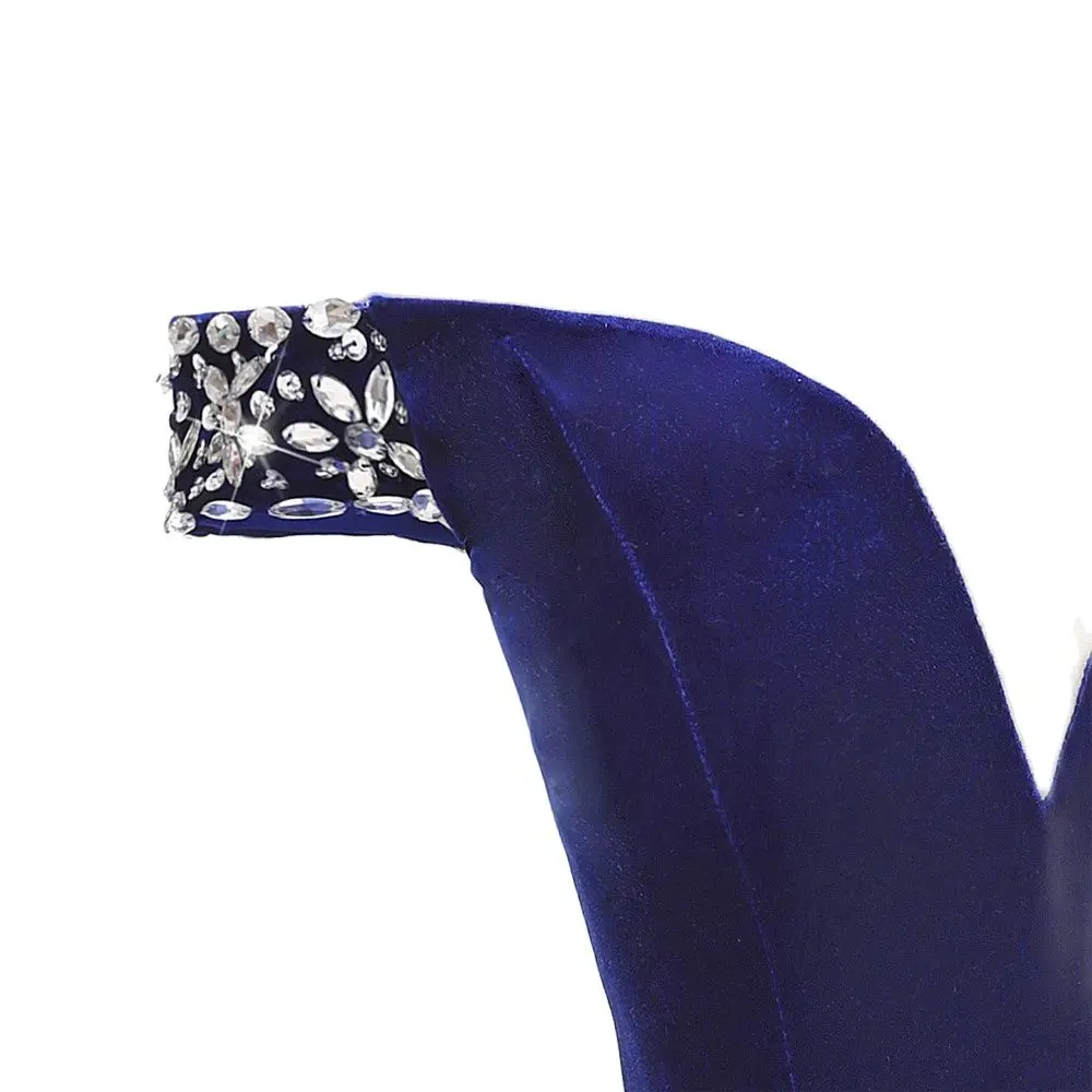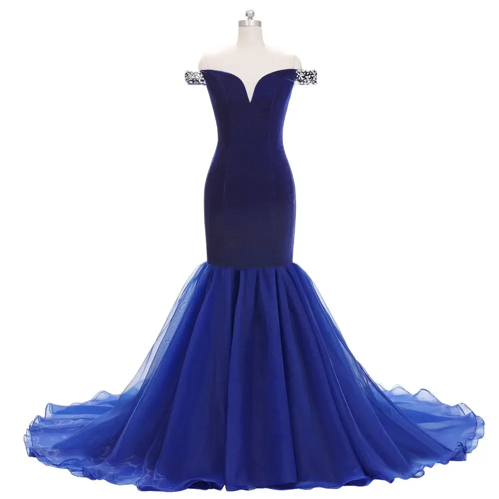Женское вечернее платье с юбкой-годе, темно-синее бархатное платье с V-образным вырезом, расшитое бисером