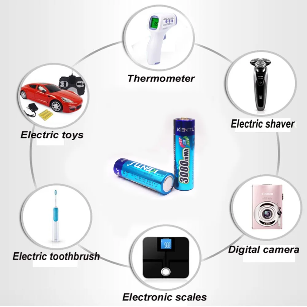 KENTLI 4 шт. без эффекта памяти 1,5 В 1180mWh AAA литий-ионная аккумуляторная батарея для термометра