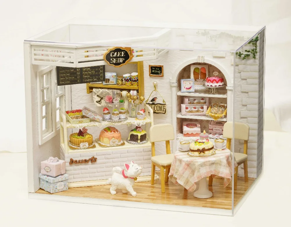 Кукольный дом с пылесборником, Миниатюрный Кукольный дом ручной работы, игрушки сделай сам для детей, подарок на день рождения, Дневник кота, торт H014