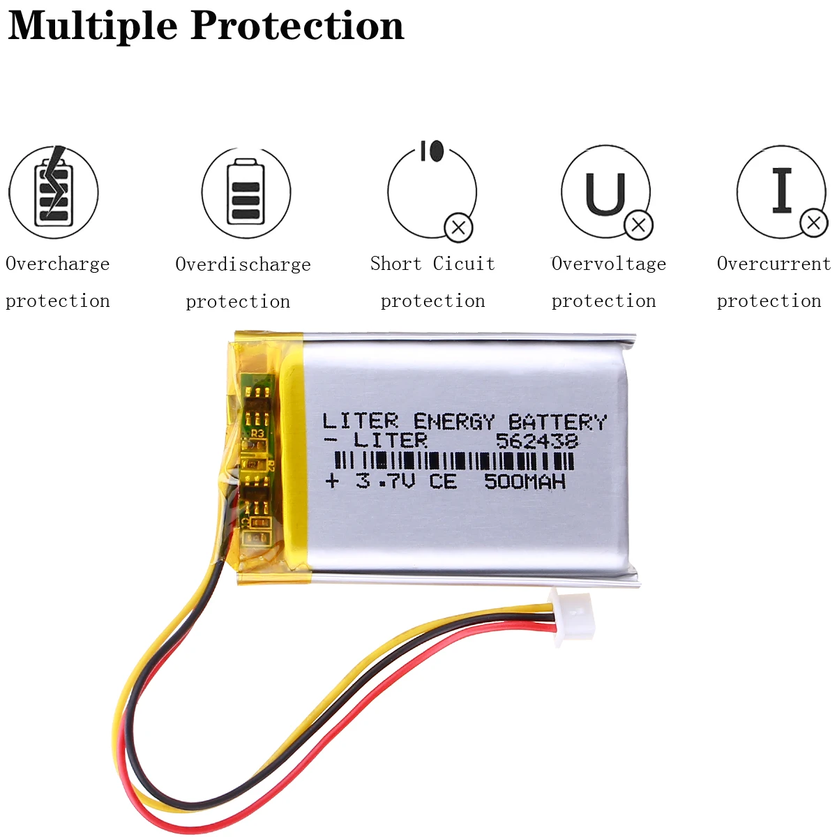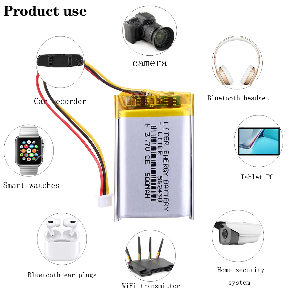 Полимерный литий-ионныйлитий-ионный аккумулятор 3,7 в 500 мА ч 562438 для смарт-часов, mp3, mp4