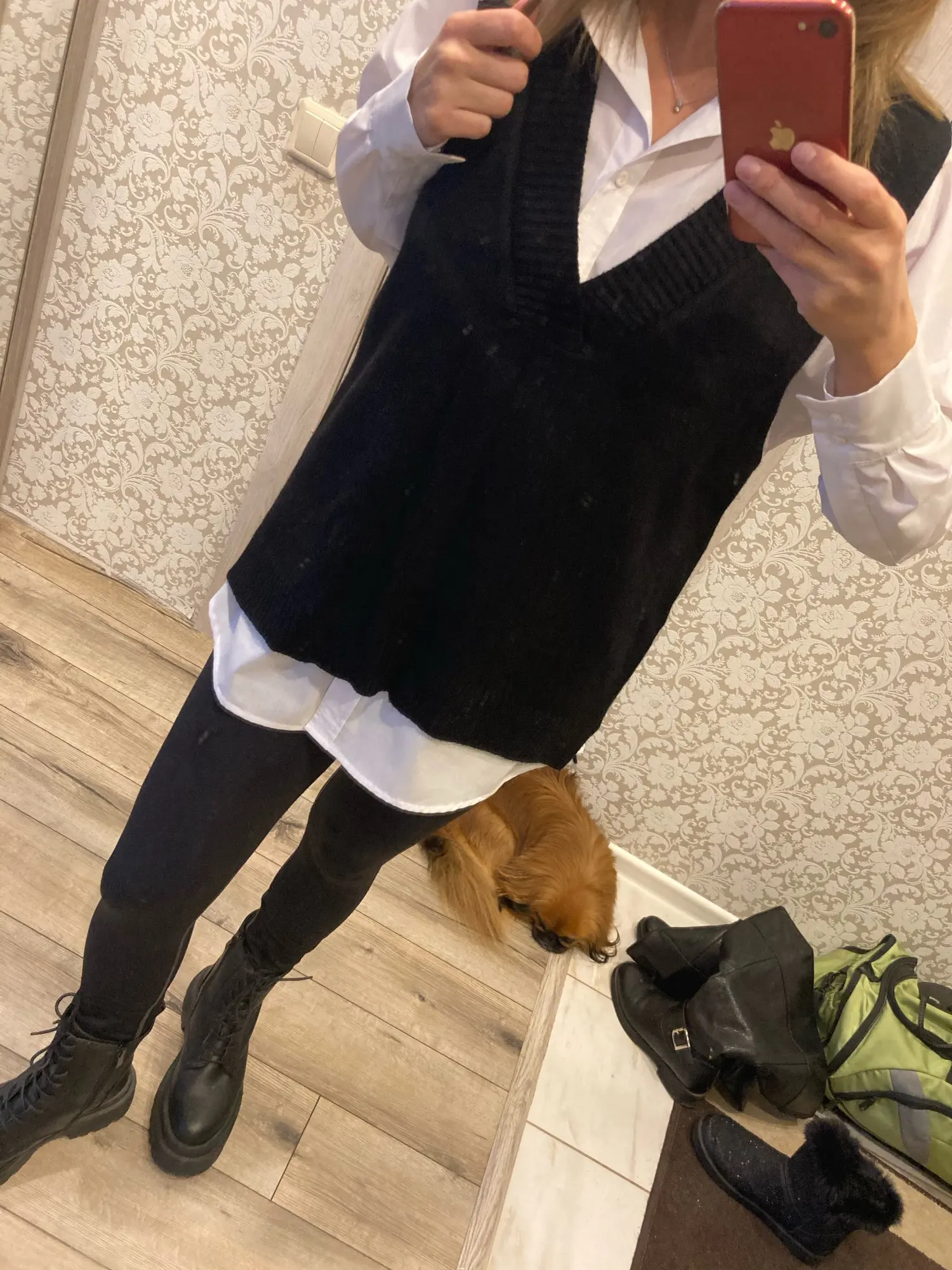 Отличный базовый жилет. Мягкий и стильный. Можно собрать много образов, сочетается со всем. Заказывала на распродаже. Досиавка около 4 недель. Продавец положил в подарок куптн на следующую покупку и резиночку для волос.
