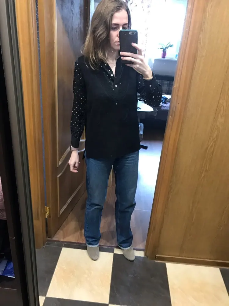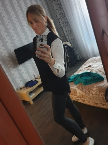 На мои параметры 89-68-97 очень свободна, под рубашку одеваю, смотрится так.... Широкая и длинная, мне не понравилось как сидит, Хотелось бы чуть меньше, горловина не ровная, вернули часть денег, очень долгая доставка в РБ