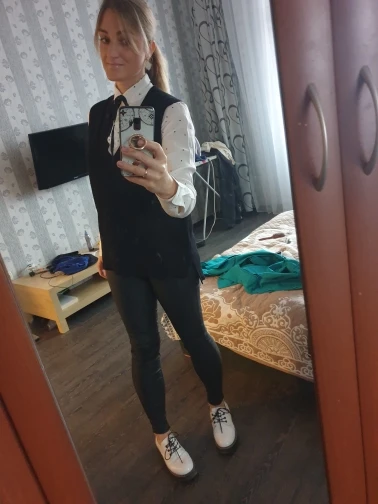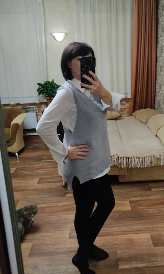oтличный жилет, я переживала что не будет сильно заметен оверсайз так как ношу 46 размер, но все нормально оказалось