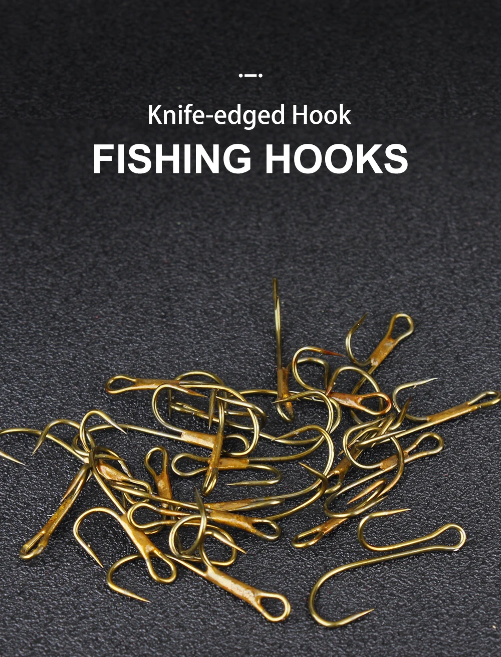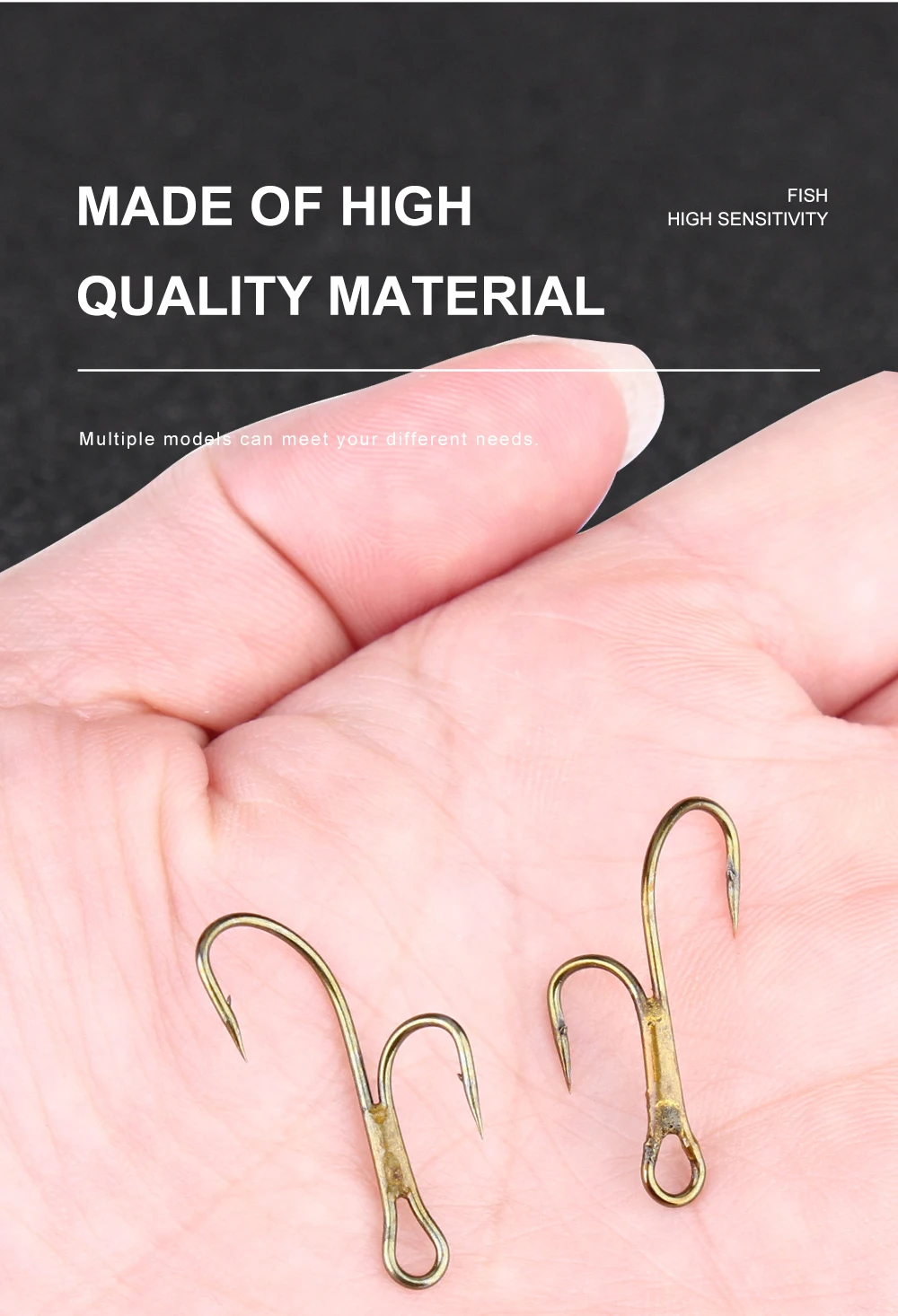 FISH KING, 20 шт., двойной рыболовный крючок из высокоуглеродистой стали, Золотой крючок с бородкой, 1 #2 #4 #6 #8 # Форель, щука, Крючки для рыбалки с окунем и кольцом