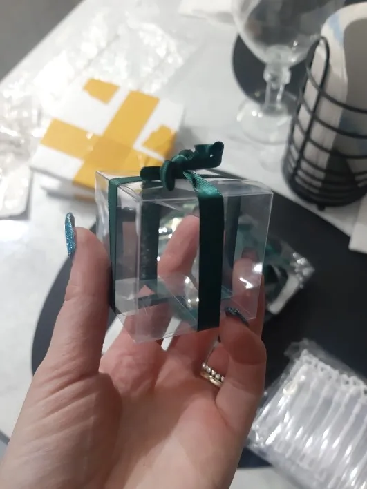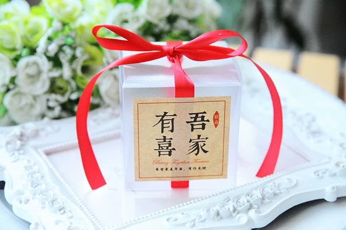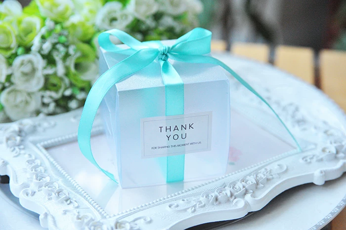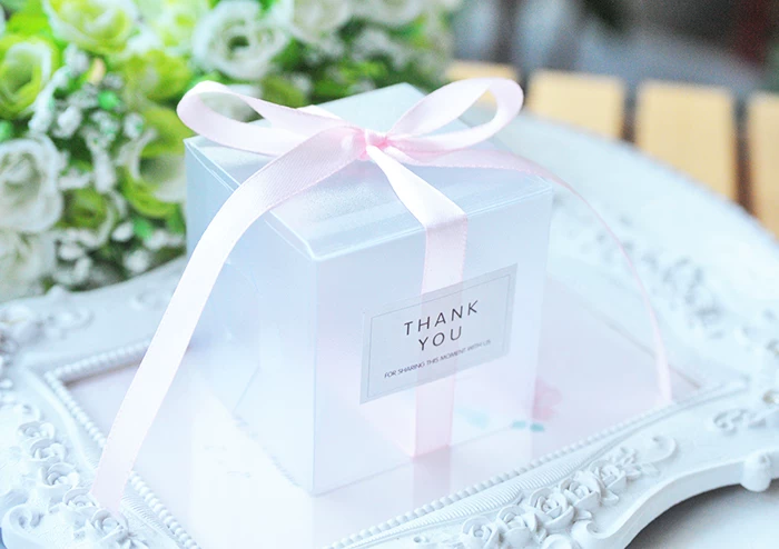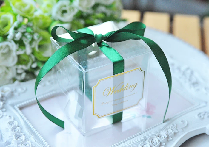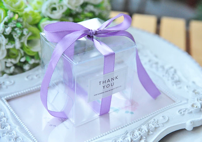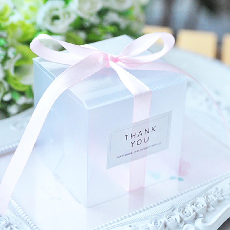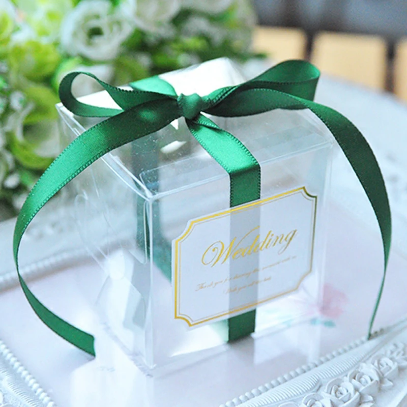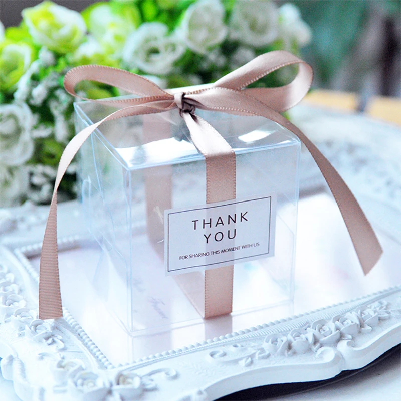 Прозрачные коробки для конфет из ПВХ, 5x5x5 см, свадебные украшения вечерние Подарочная коробка, коробка для конфет с лентой